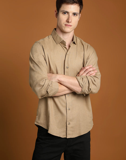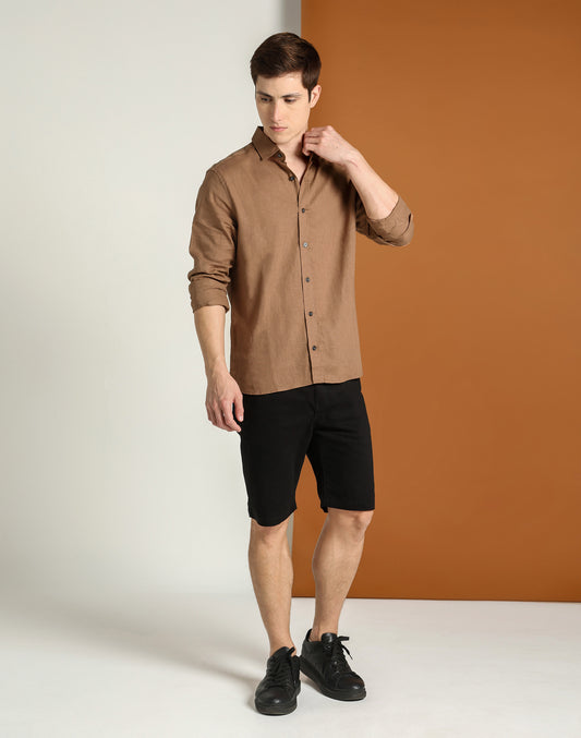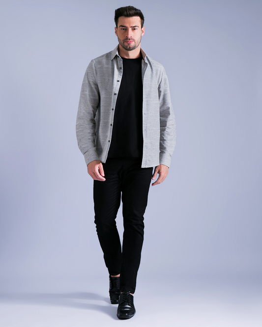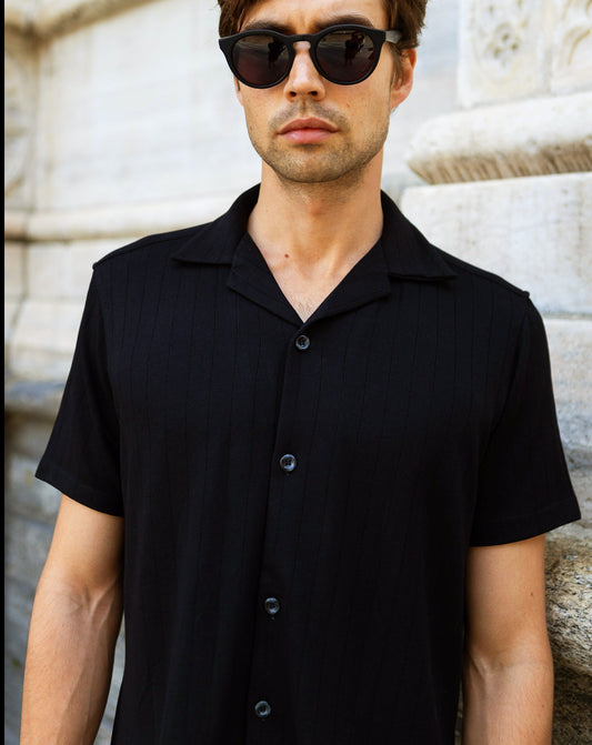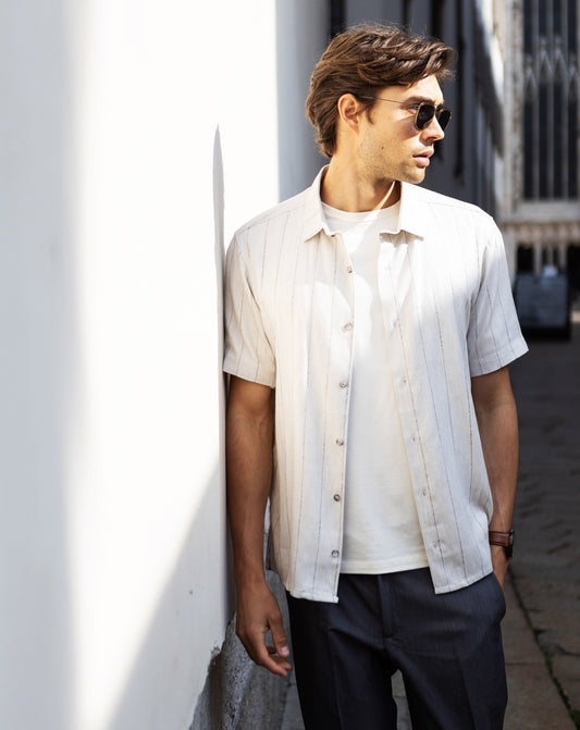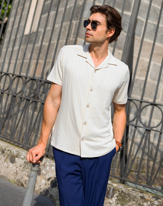 CAMISA MANGA CURTA MALHA COM TEXTURA LINHO