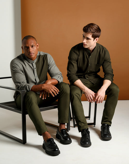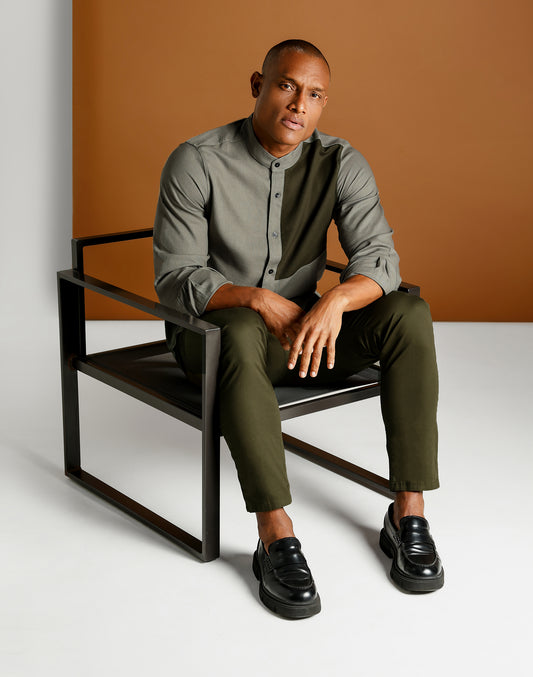 CAMISA LINHO GOLA PADRE RECORTES SLIM VERDE MUSGO