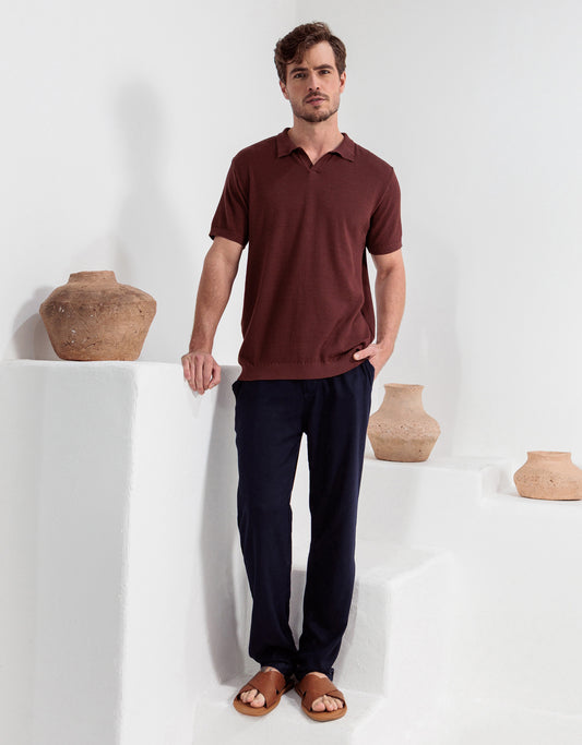 CAMISA SOCIAL EM MALHA MARROM