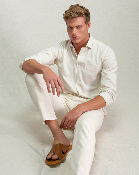 CAMISA LINHO GOLA PADRE RECORTES SLIM OFF