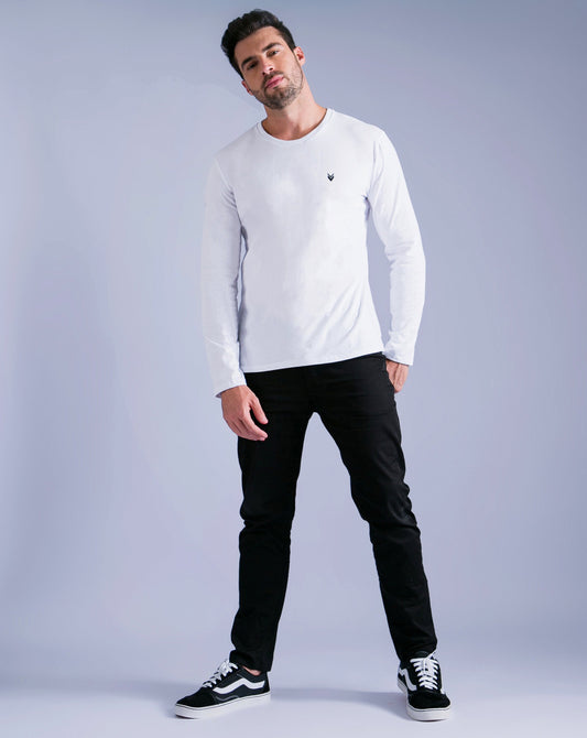 CAMISETA MANGA LONGA DECOTE REDONDO LETRAS COSTAS