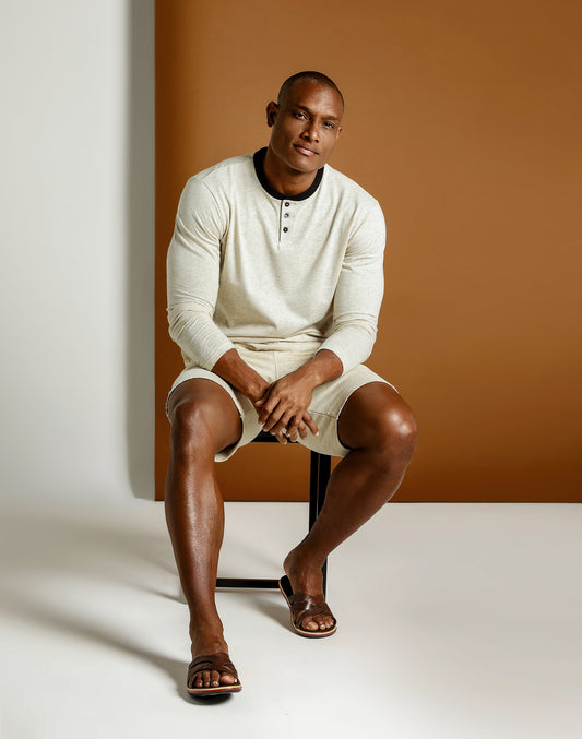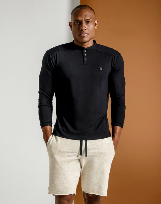 CAMISETA MANGA LONGA HENLEY CONTRASTE PRETO