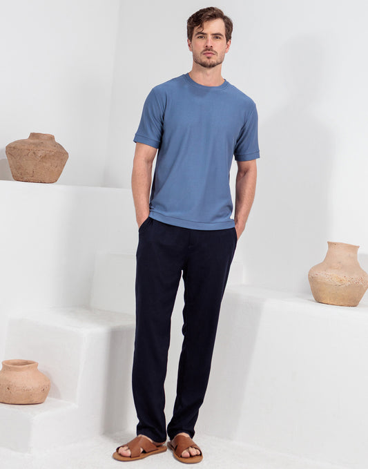CAMISETA MANGA LONGA HENLEY VISCOSE MARINHO