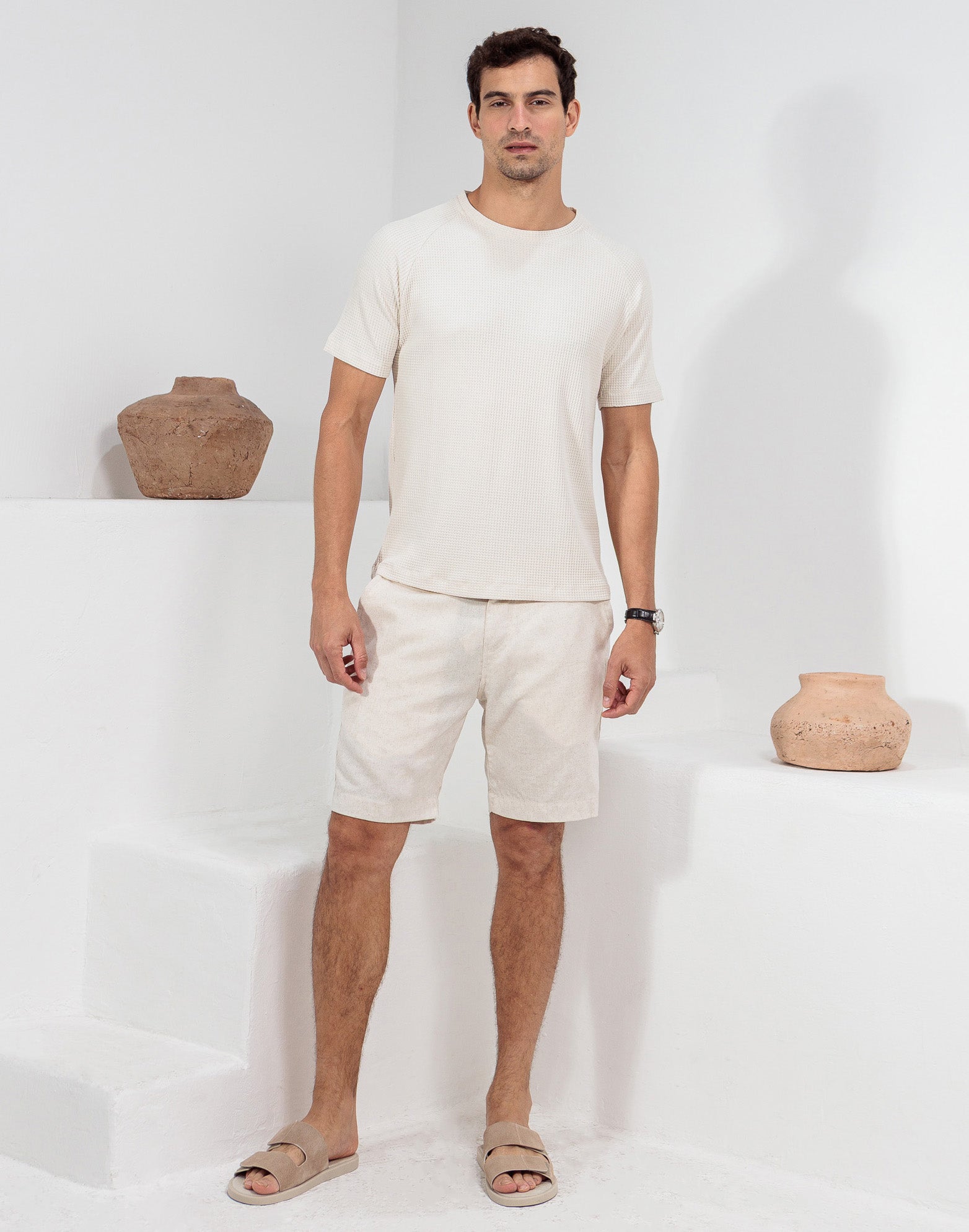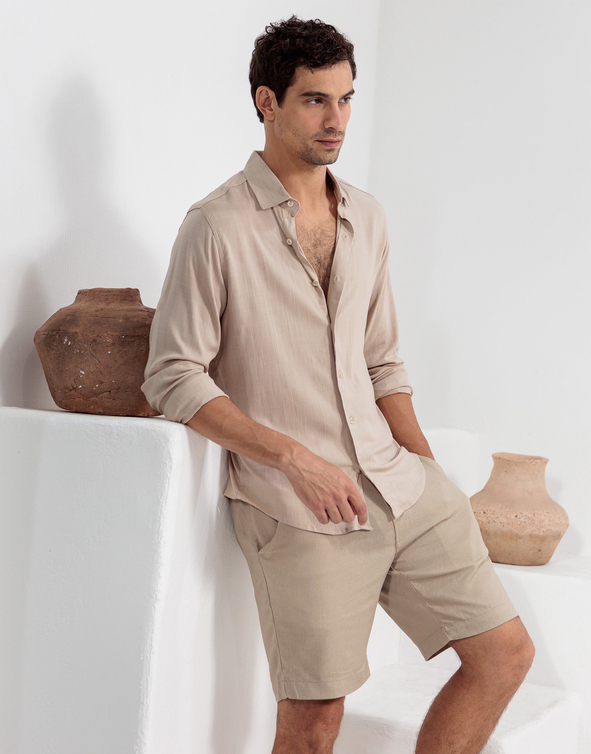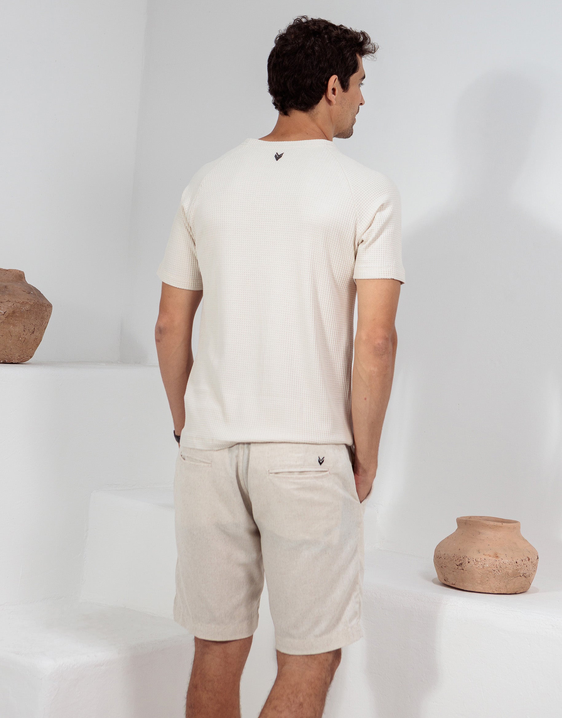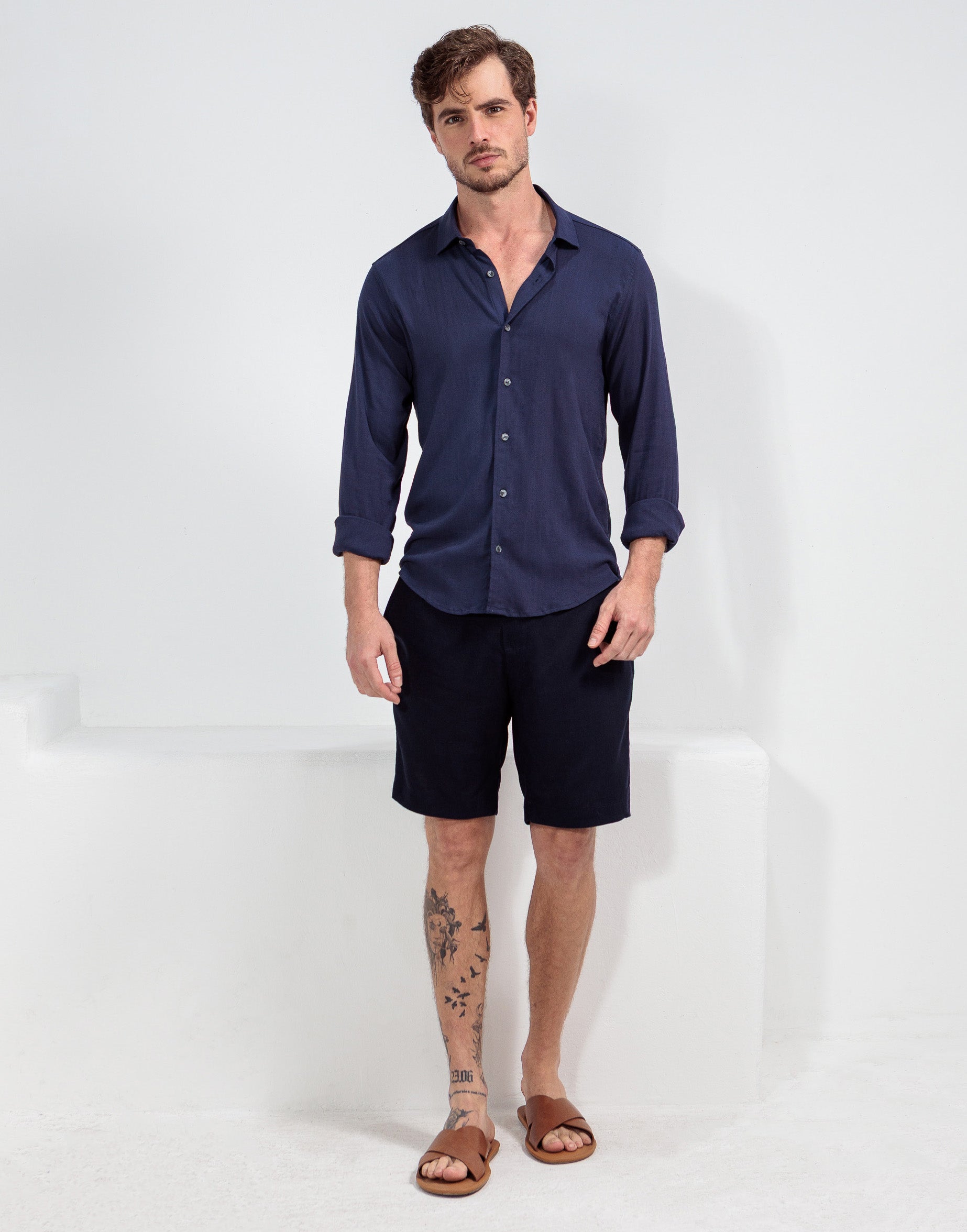 Bermuda reta confeccionada em tecido de viscolinho (viscose + linho), o sustentável, confortável e elegante na medida certa. Seu tecido respirável de toque leve e macio é agradável para dias quentes. De modelagem relaxed, pode ser usada na praia, na cidade, de noite e de noite. Criando combinações com camisas de linho, camisetas básicas, polos e regatas com camisas abertas por cima, ideal para um visual casual e sofisticado.