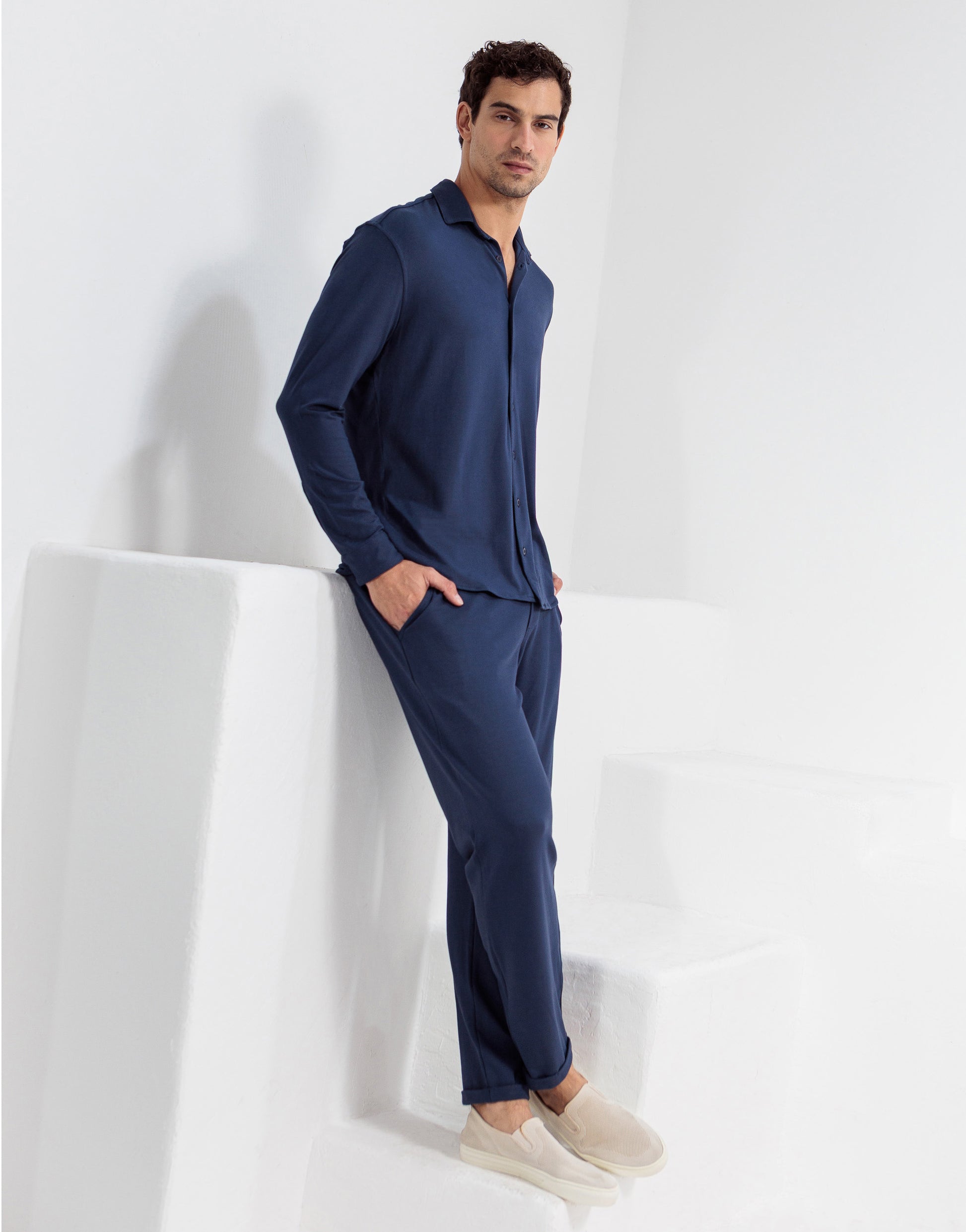 Calça reta de comprimento italiano (mais curto) confeccionada em malha piquet de viscose com elastano. A malha deste produto passa pelo processo tecnológico "Vortex", que garante um toque macio e ótimo caimento ao corpo. O frescor e a elasticidade do tecido proporcionam um super conforto ao modelo alfaiataria capri. Cós com elástico interno embutido e cordão para ajuste perfeito na cintura. Bolsos traseiros com botões para um melhor fechamento. Uma peça que une a elegância e conforto em um visual moderno e sofisticado. Pode ser usada em diversas ocasiões, como trabalho e passeio, e diferentes composições de look, com camisas, camisetas e/ou polos.