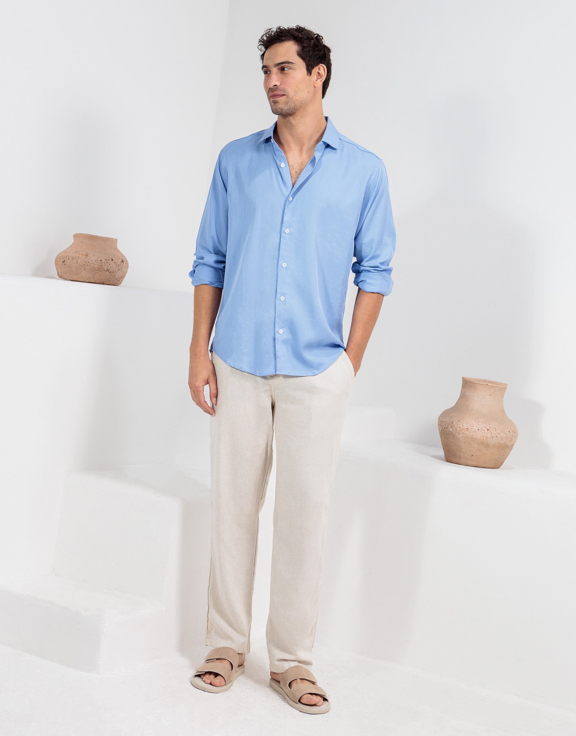 Camisa manga longa de modelagem regular confeccionada em tecido de Liocel. O TENCEL™ Liocel (Lyocell) é uma fibra nobre que une o conforto e a sofisticação. Produzido à partir da celulose ou da pasta de madeira, é um fio natural sustentável, que nasce uma matéria-prima natural e renovável. Seu toque suave e fresco têm alta resistência, absorvendo a umidade de forma eficiente e com maior conforto térmico durante todo o uso. A camisa Liocel é a sua camisa sofisticada, clean, fresca, versátil, sustentável, de alta qualidade.