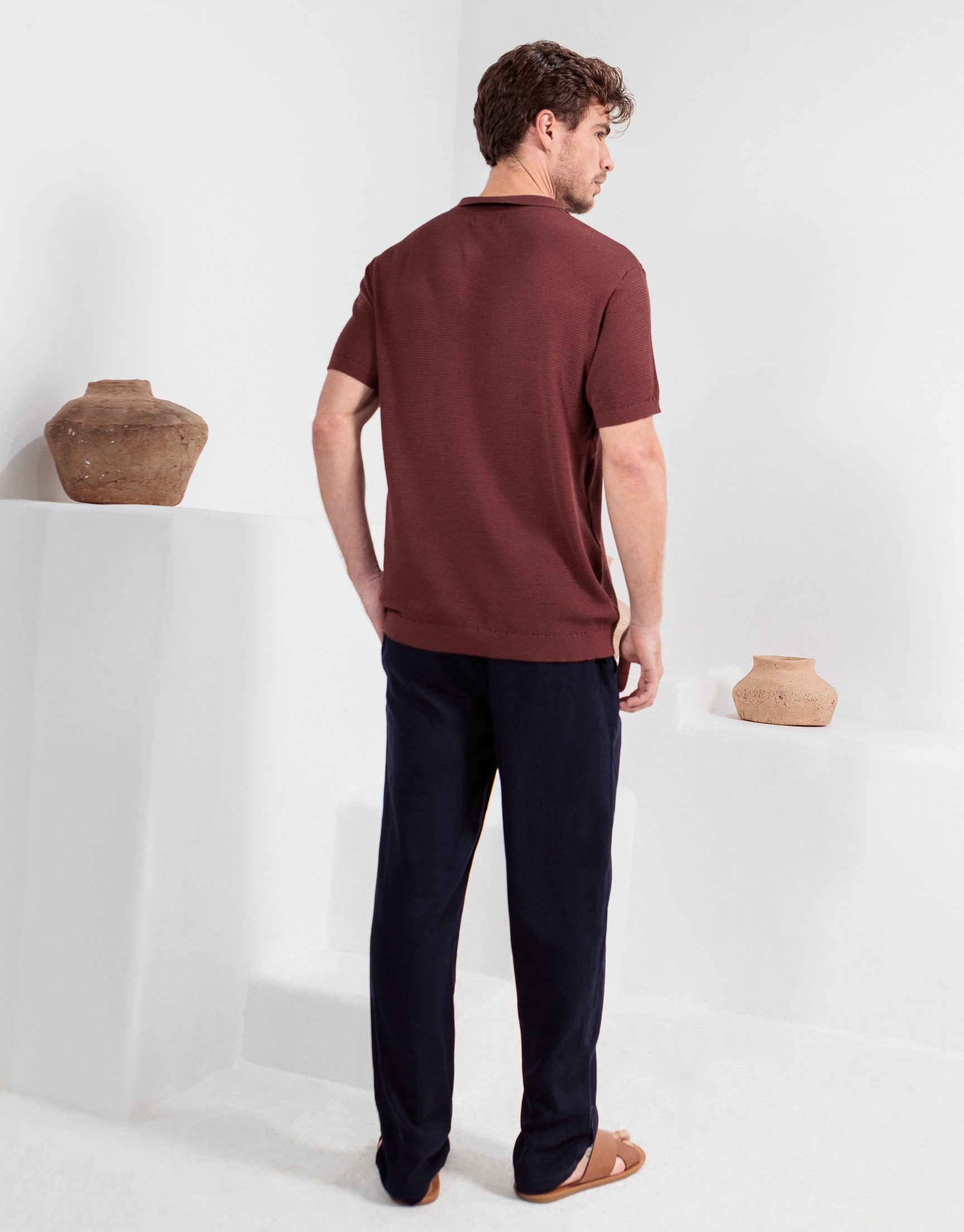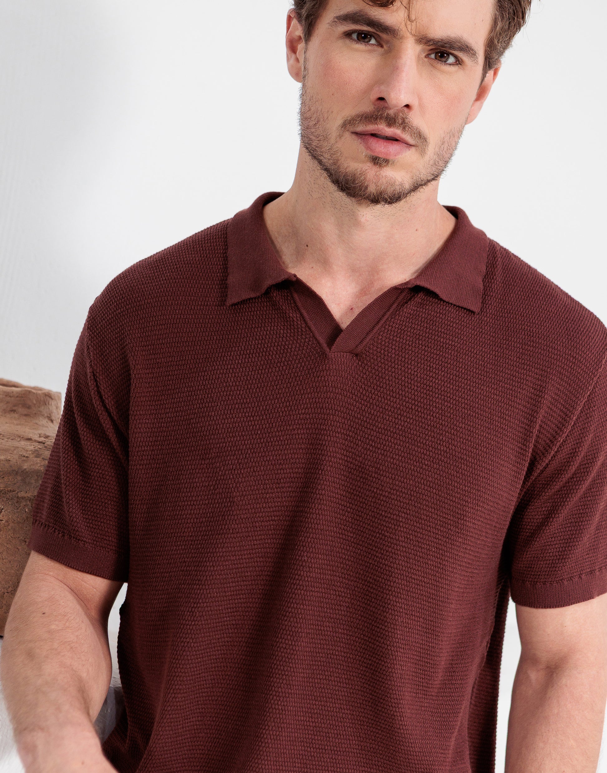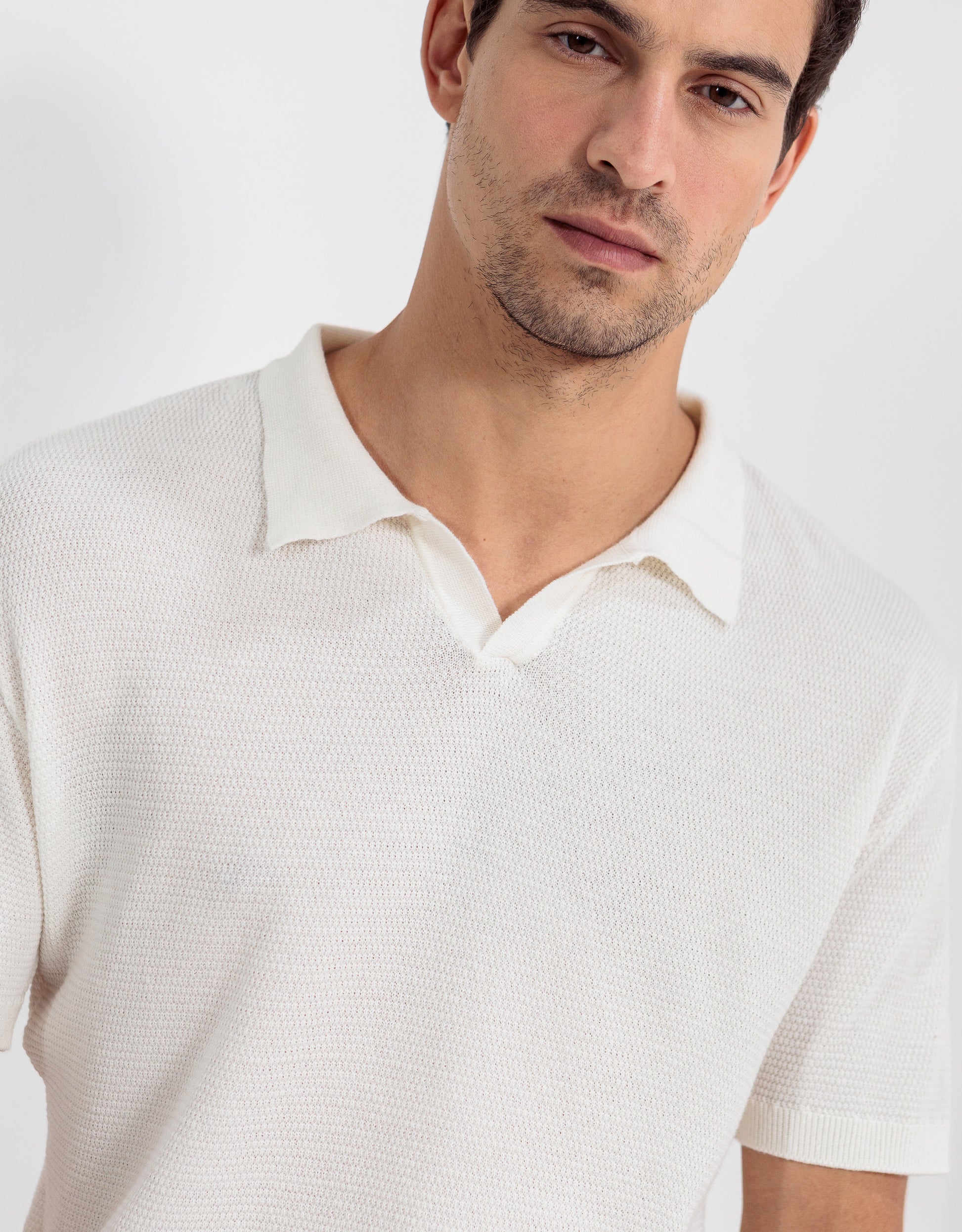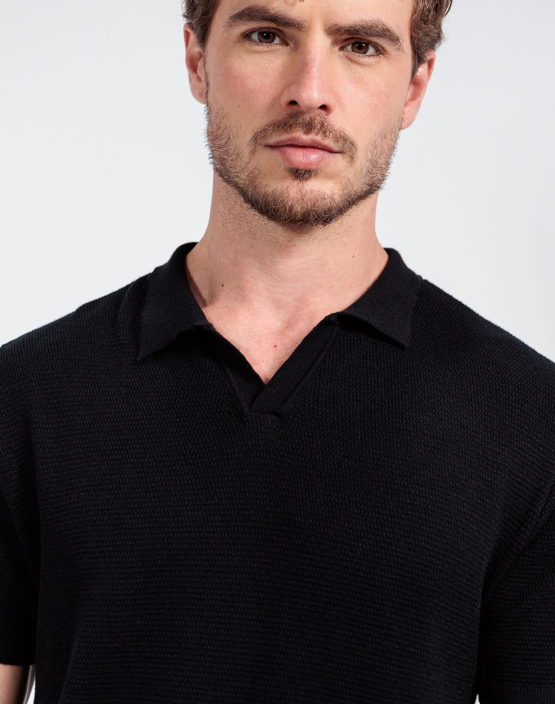 Camisa polo confeccionada em tricô/tricot texturizado com o ponto suavemente aberto, que garante leveza, maciez e frescor ao vestir. Modelagem regular, meia manga, decote V com colarinho e punhos nas barras. Conforto, elegância e atemporalidade representam essa polo de toque moderno. Ideal para compor diferentes looks para diferentes ocasiões, desde trabalho a passeio, praia e cidade, dia e noite.