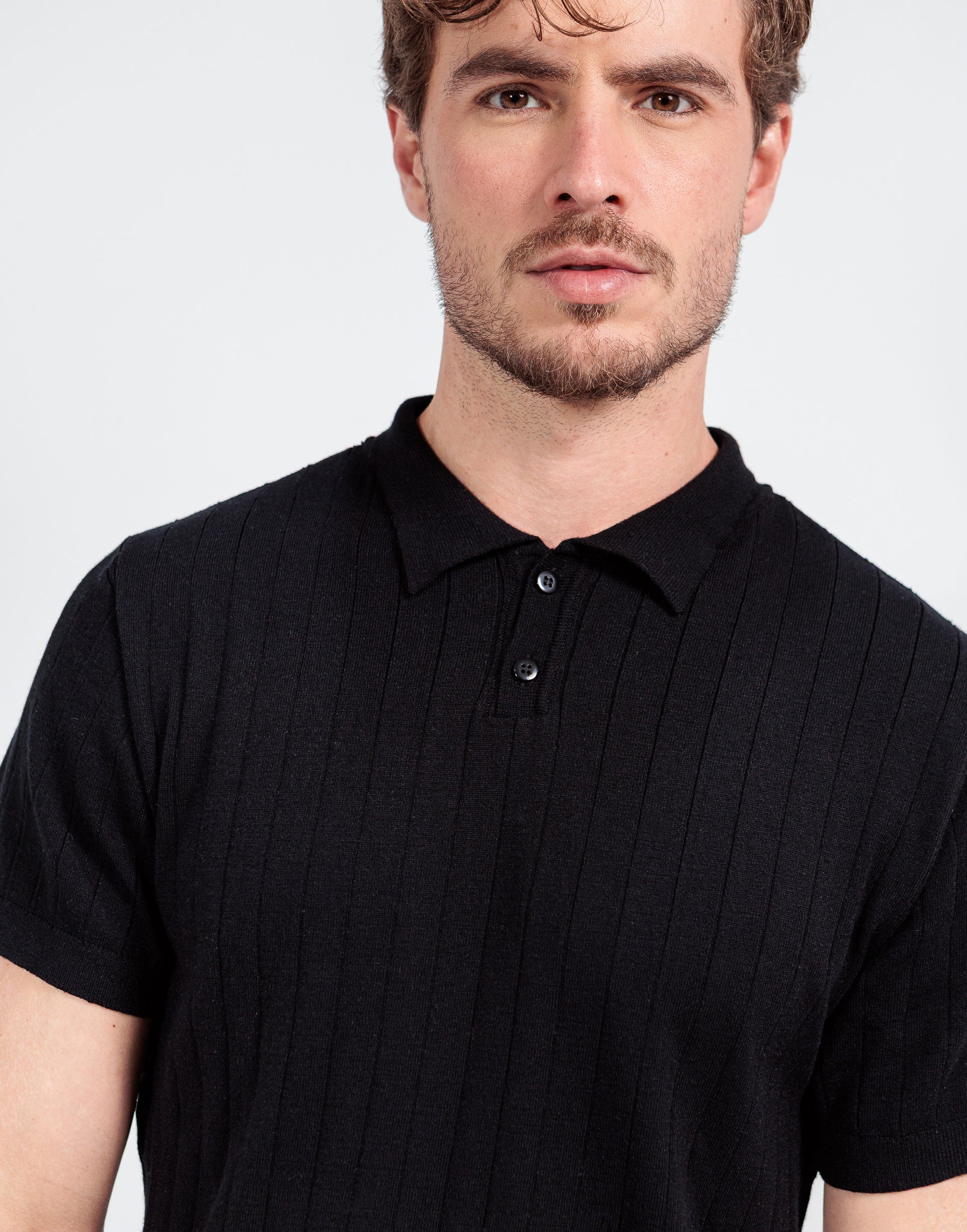 Camisa polo confeccionada em tricô/tricot canelado espaçado de toque macio e fresco. De modelagem regular, meia manga, e punhos nas barras, possui decote com fechamento de 2 botões e colarinho tradicional. Conforto, elegância e atemporalidade representam essa polo. Ideal para compor diferentes looks para diferentes ocasiões, desde trabalho a passeio, praia e cidade, dia e noite.