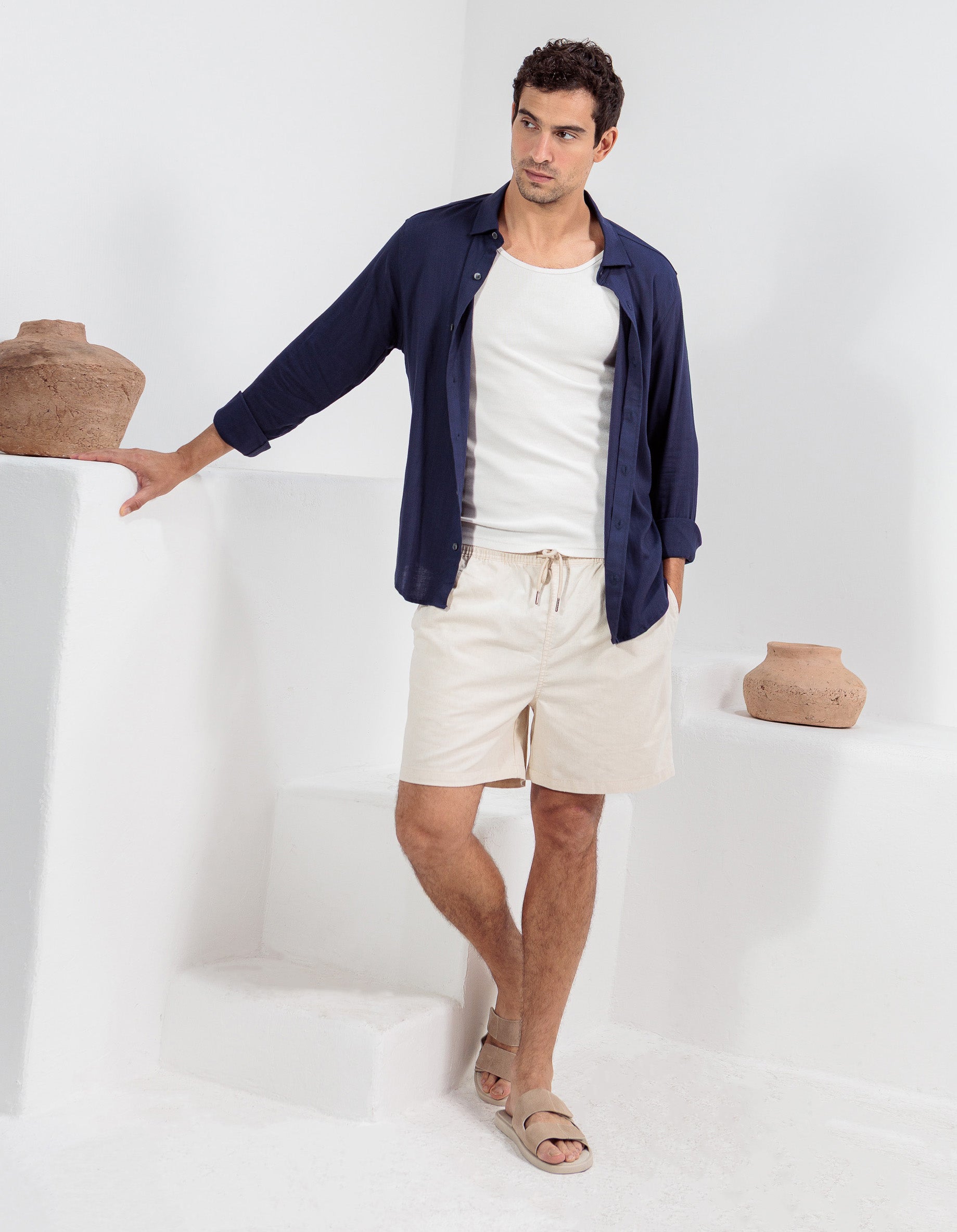 Camisa com efeito de linho, super leve e refrescante ao corpo, confeccionada em tecido fino de viscose com elastano. De modelagem slim, pode ser usada de diversas maneiras: fechando todos os botões, deixando os dois/três primeiros abertos, ou inteiramente aberta com uma camiseta ou regata por baixo; mangas dobradas ou mangas compridas abotoadas. Camisas de linho são as clássicas camisas sofisticadas e despojadas para o verão. Essa por ser macia, fresca e com elasticidade proporciona um conforto maior.